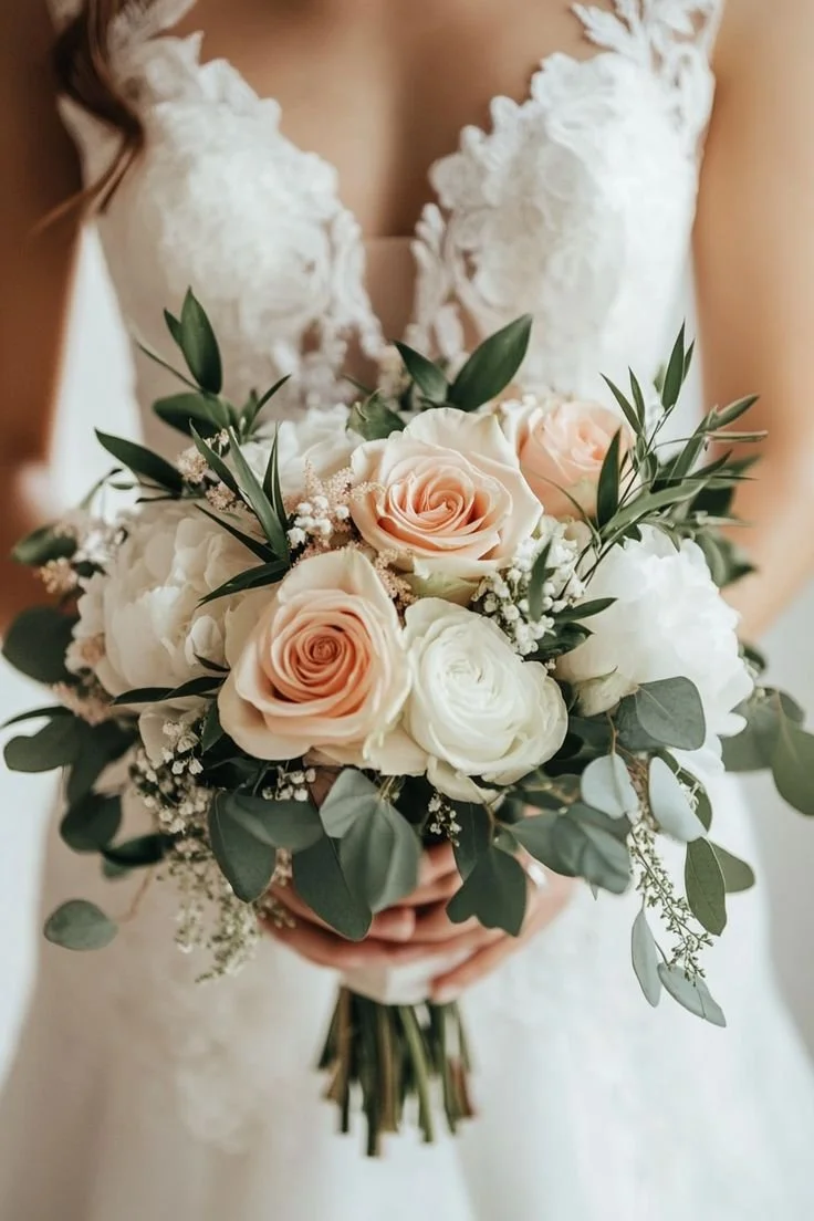 Our Beautiful Day Collection floral collection - a classic look with pristine beauty. This collection showcases an exquisite array of pure white blooms (primarily roses and baby’s breath), artfully arranged with minimalistic greenery to evoke a sense of understated luxury. Minimal greenery is meticulously incorporated to accentuate the purity of the white blooms. The elegance of this collection is perfect for black and white themed weddings.